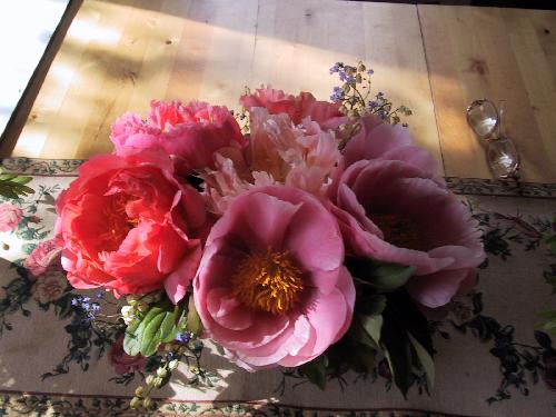 Below you find a collection of our home grown flowers beautifully presented in vases. Look at some of the gigantic sizes of the peony flowers!